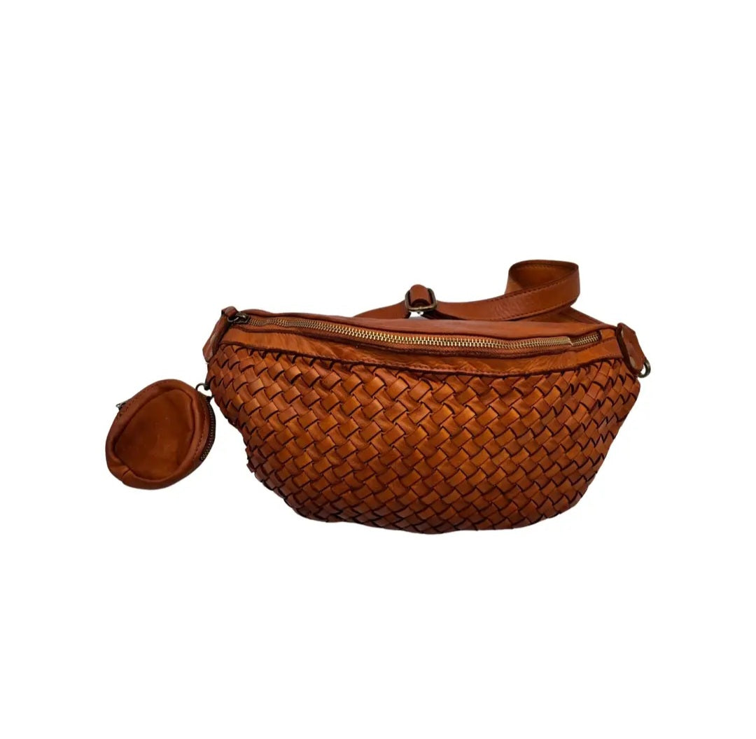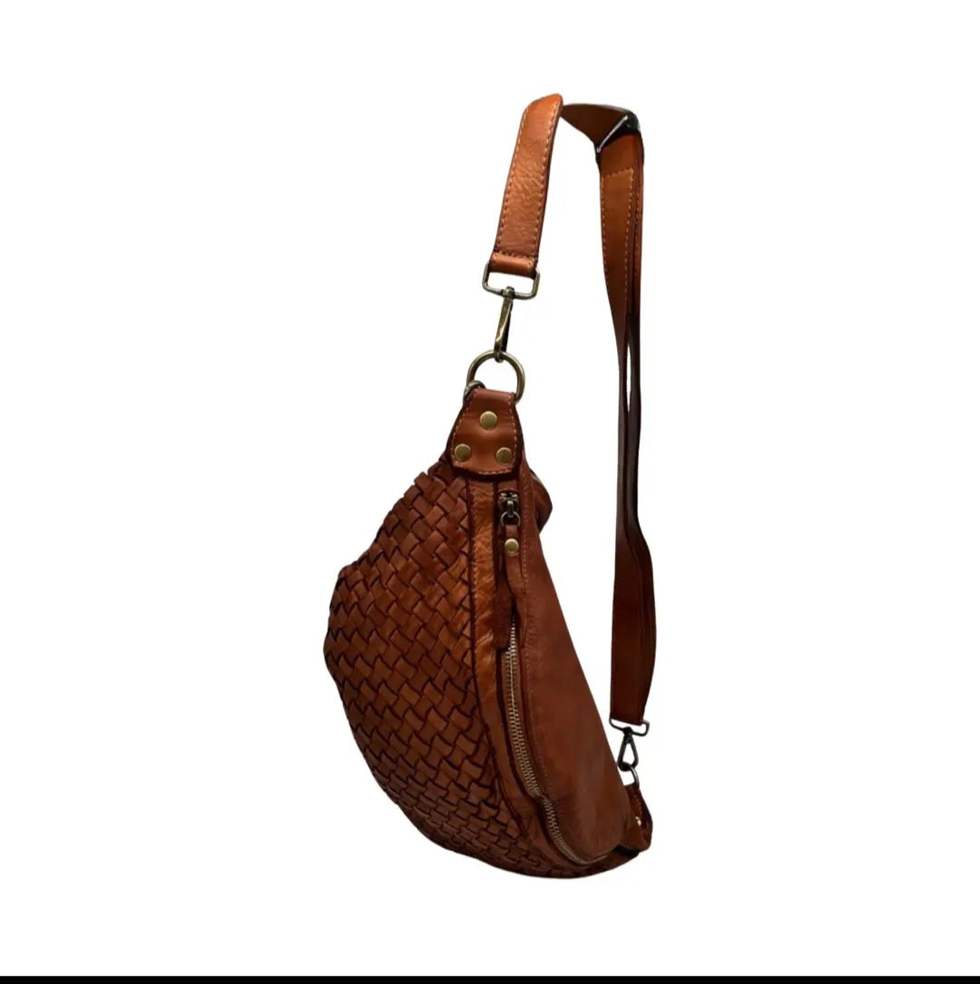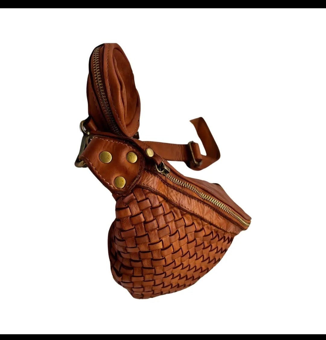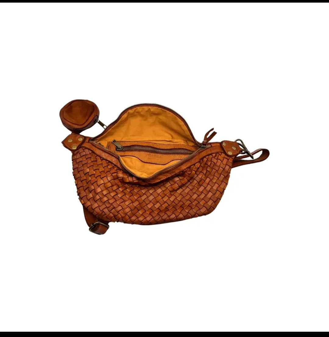 Ambra är en handgjord bananväska i tvättad kohud, skapad i Italien med genuint hantverk och en anmärkningsvärd vintagestil. Den mjuka skinnkvaliteten och den unika flätade designen ger väskan en personlig karaktär och ett exklusivt uttryck.