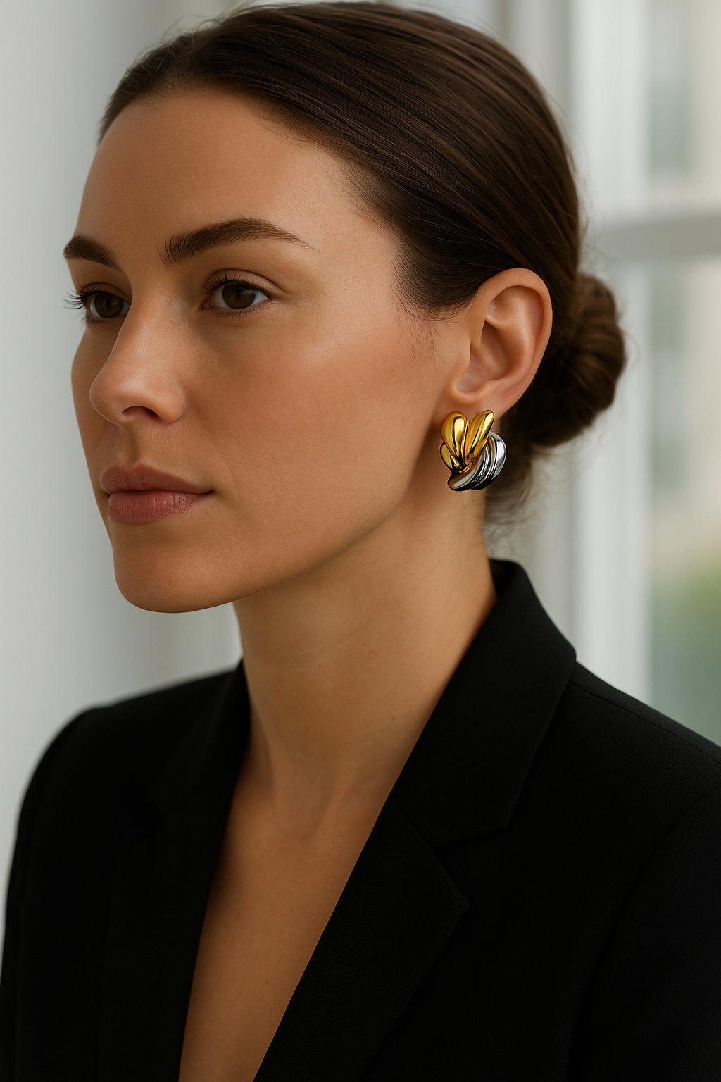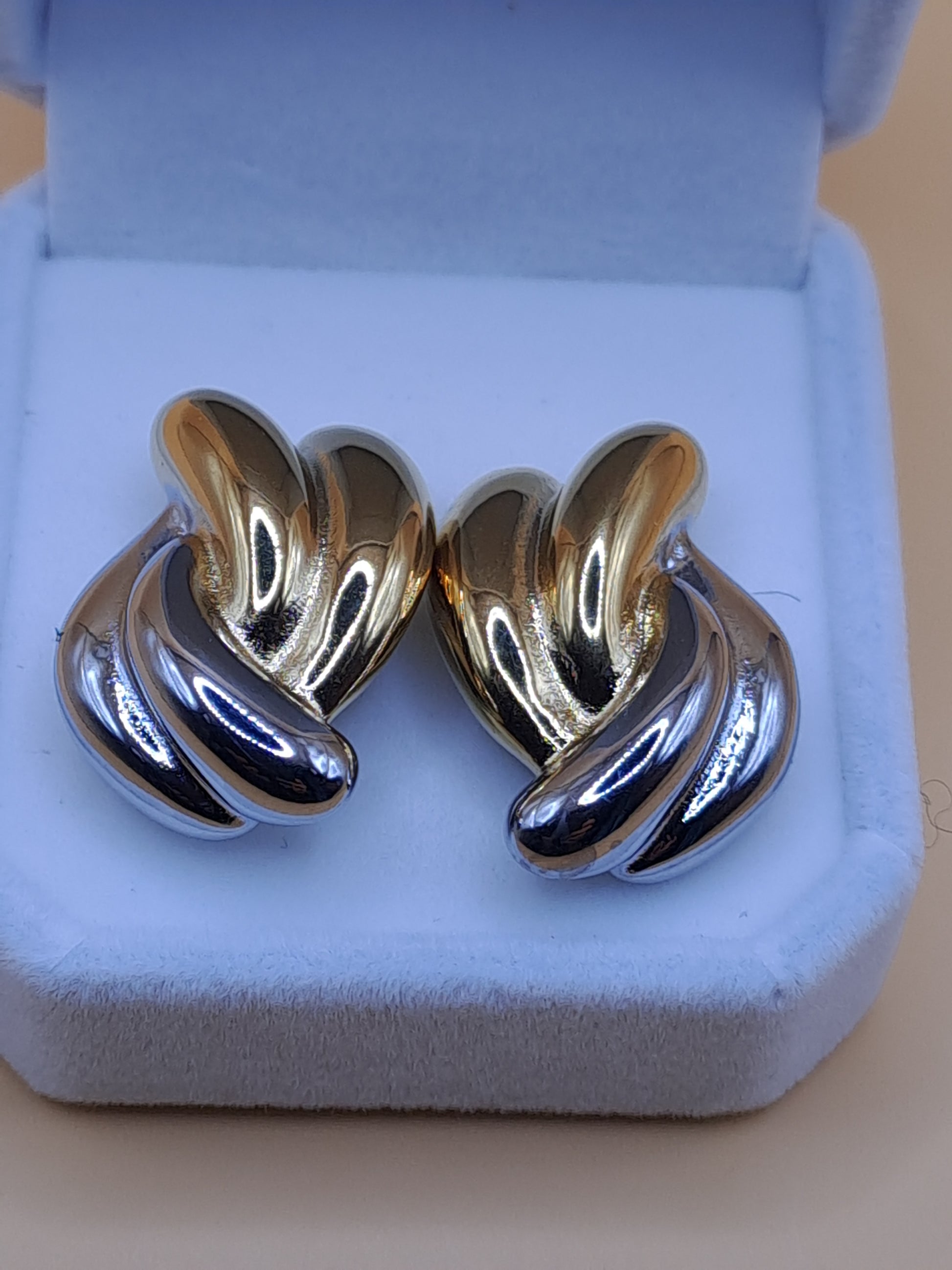 Mjukt formade örhängen i en harmonisk kombination av guld och silver.
